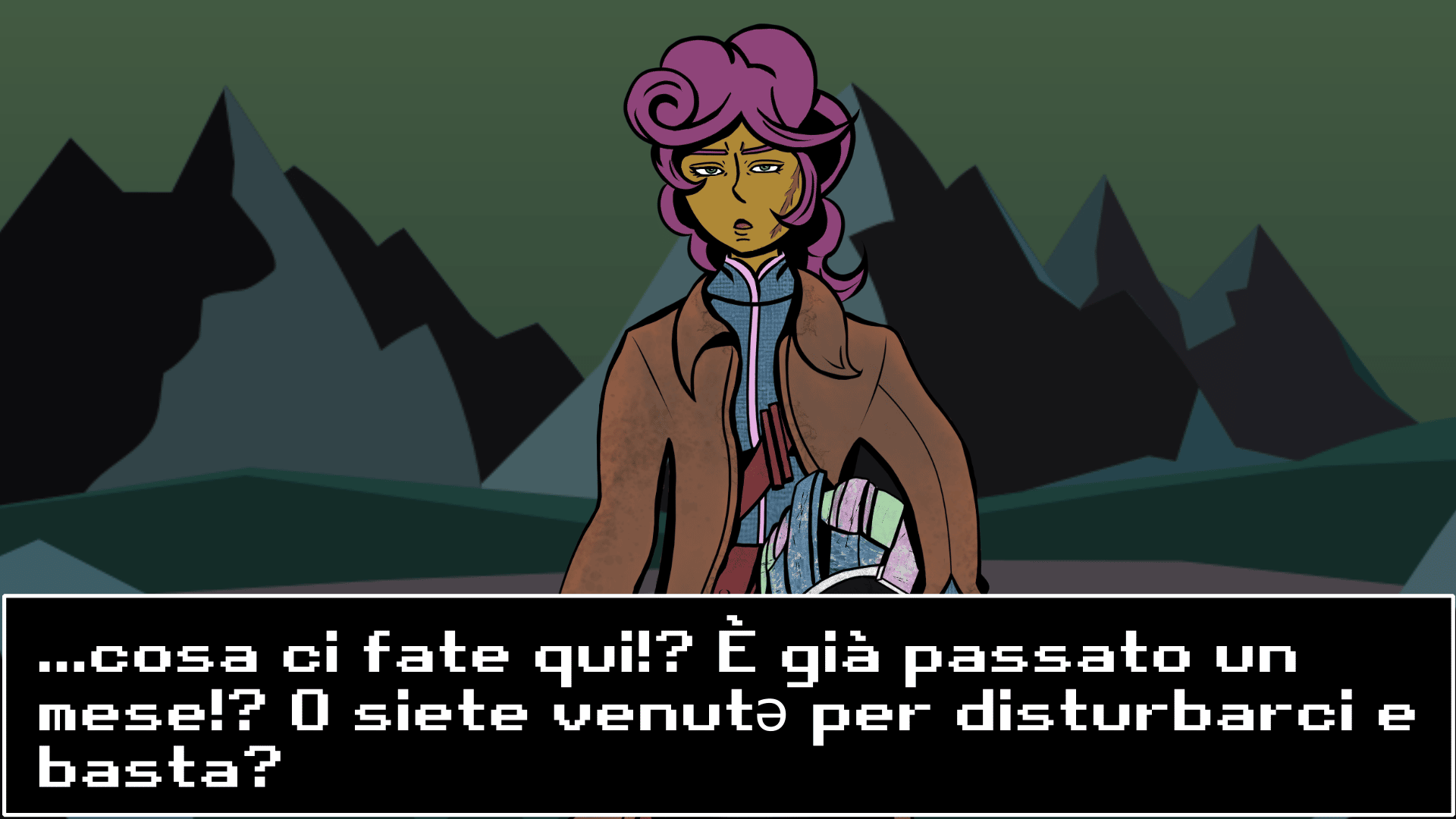 State già per risponderle a tono quando una voce da lontano prontamente salva il giorno (per una volta): "Non essere così scontrosa! L'ho portatə io qui! Presentati e venite qui!" La Locandiera saggia? In questa economia? L'interlocutrice condivide la vostra incredulità, sebbene non sembri molto diversa dalla faccia di fastidio che vi aveva dedicato. Si riprende subito e, dopo aver messo la sigaretta in bocca vi porge la mano: "Jungleland-73" Ah 73! Che numero particolare, come il nome! Chissà perché...