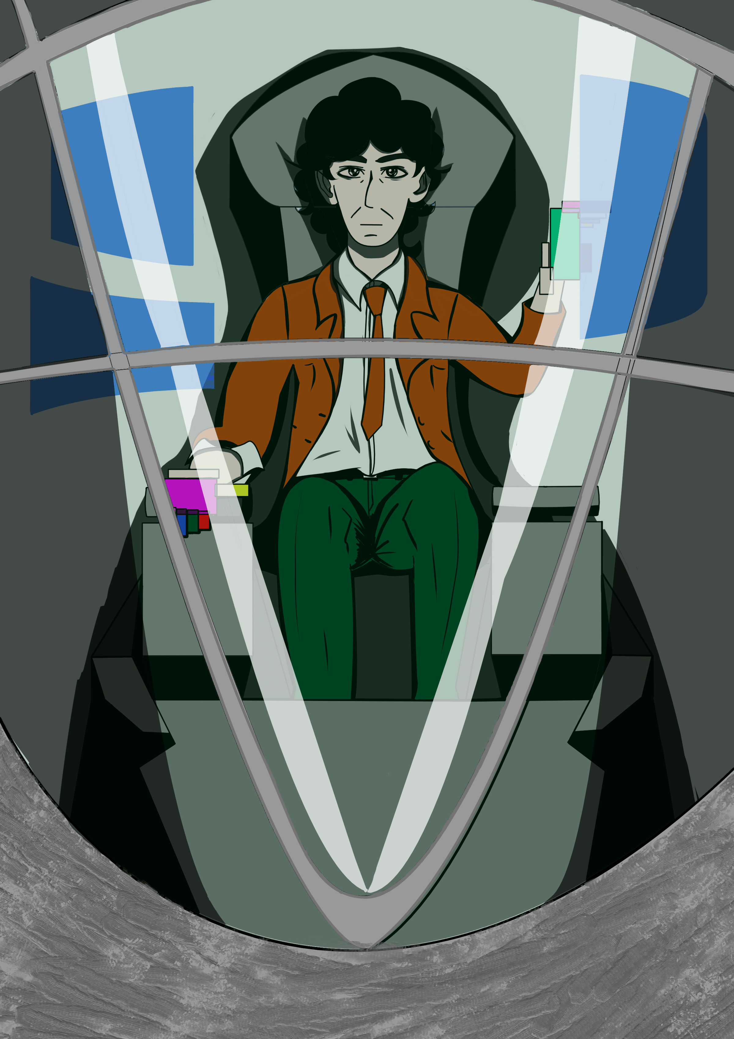Il progetto è quasi completo, Franco sta finendo di inizializzare i sistemi e testarli, poi cominceremo a lavorare fuori da qui." Guardate la cabina del mech, situata più o meno sullo sterno: riuscite a intravedere un sacco di schermi, e la stessa figura in giacca e cravatta di tanto tempo fa. Stavolta è persino a colori!